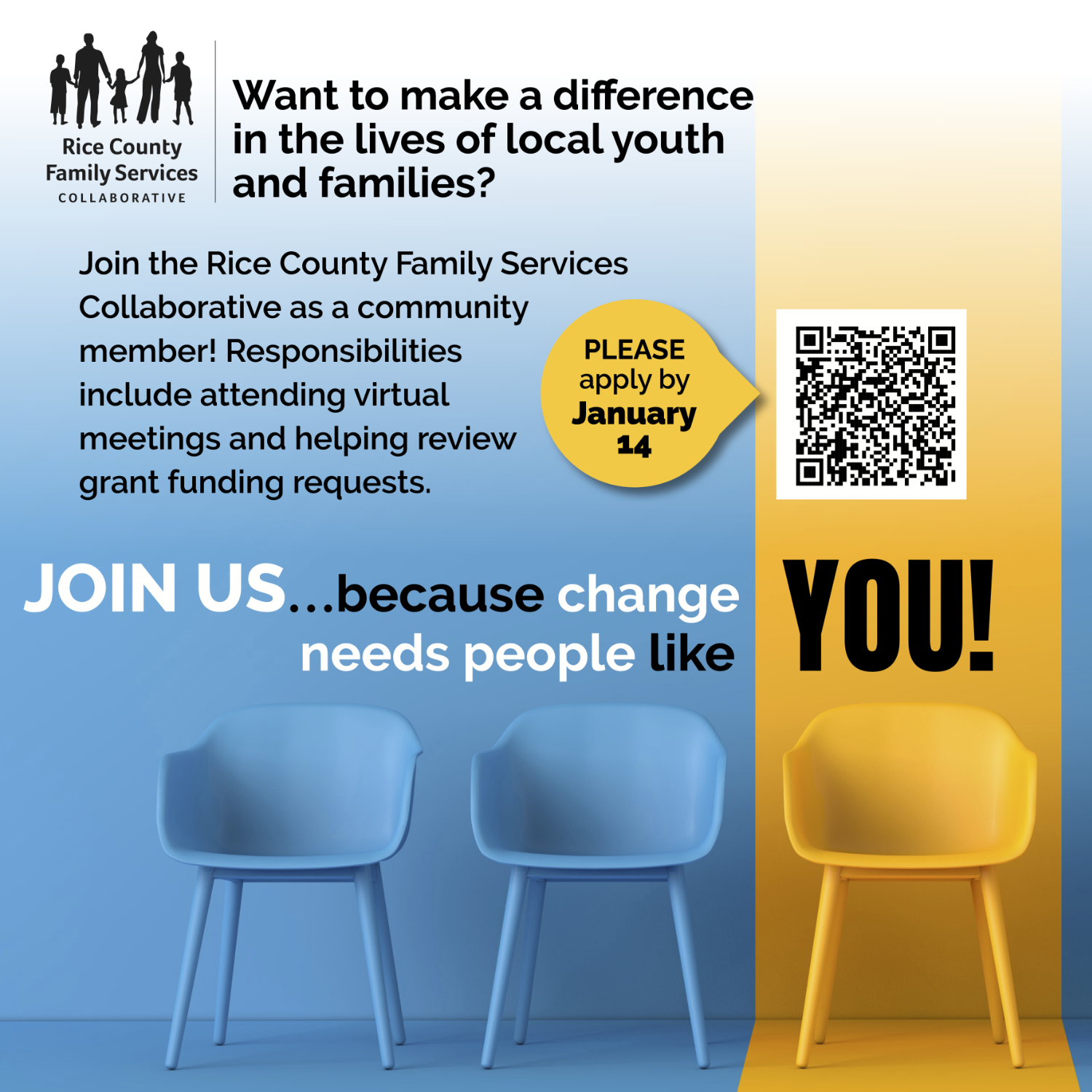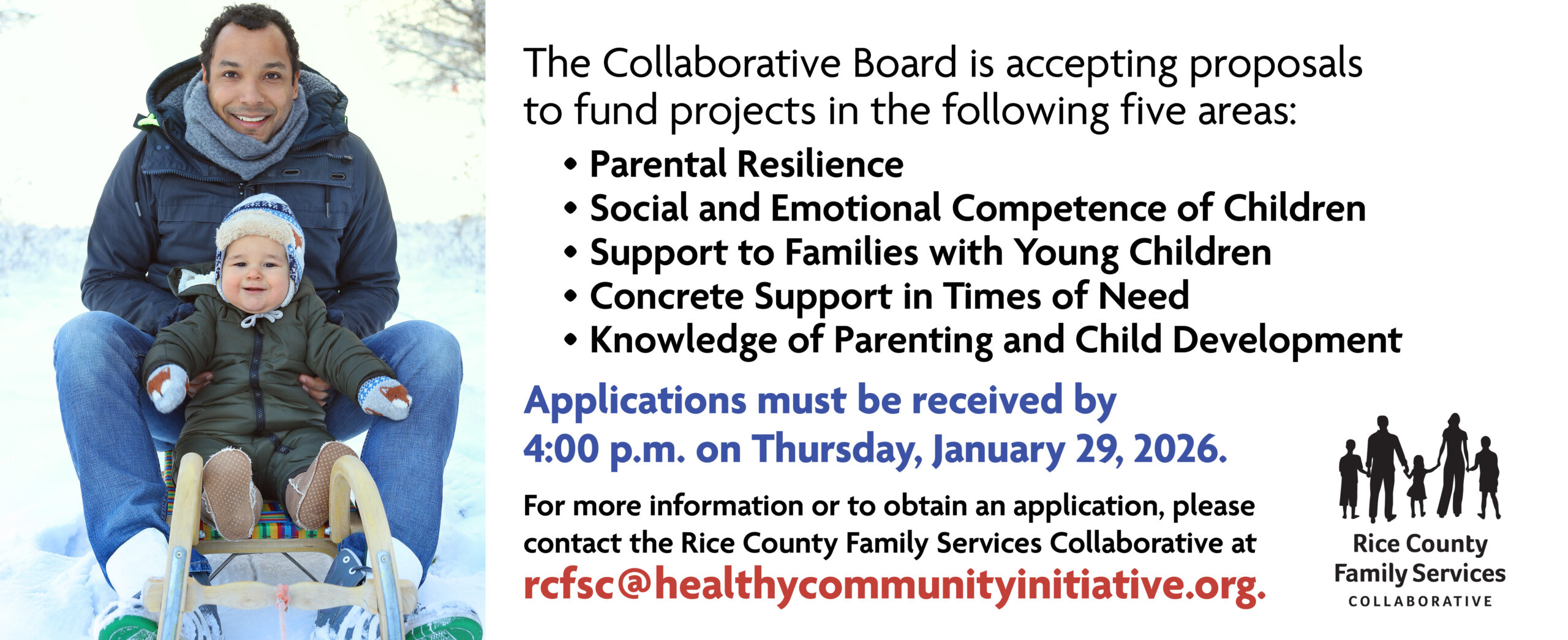 For more information or to obtain an application, please contact the Rice County Family Services Collaborative at rcfsc@hci-mn.org.